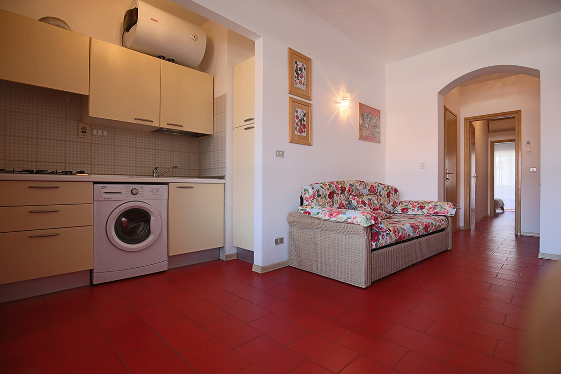 eleganti appartamenti per vacanze (60 mq) duplex composti da un soggiorno spazioso con angolo cottura attrezzato, tavolo e divano letto trasformabile in due letti separati. L'area giorno ha una bella loggia abitabile esposta a est. L'area notte è costituita da una camera matrimoniale con armadi e da camere doppia, in alcuni casi con letti a castello, in altri più spaziosa e con terrazzino, accessibile attraverso una scala a chiocciola.